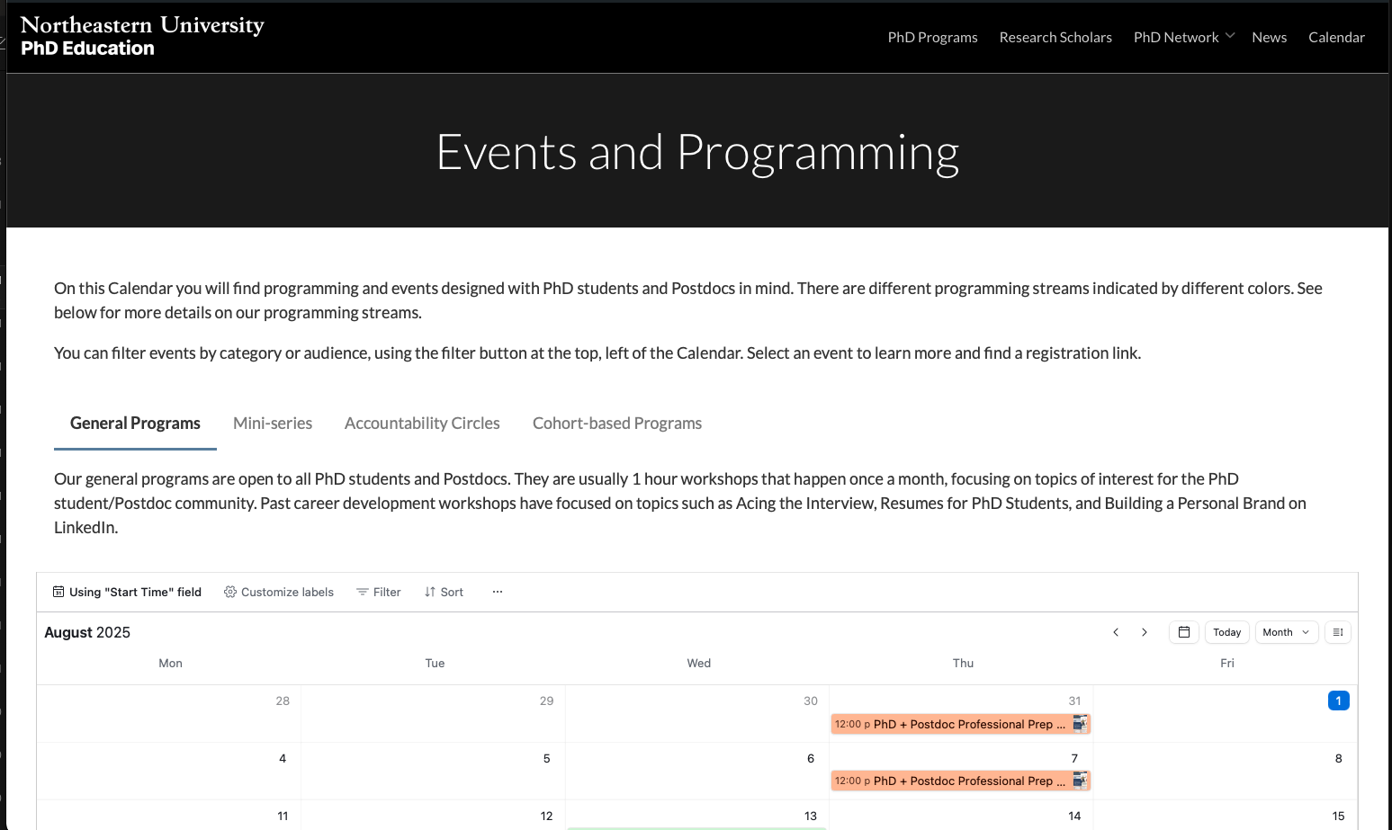 The PhD Network Calendar has moved. Keep up with our programming here: https://phd.northeastern.edu/events-and-programming/